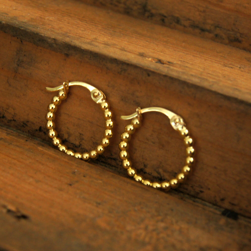 Klassieke geelgouden creolen (oorringen) met bolletjes.