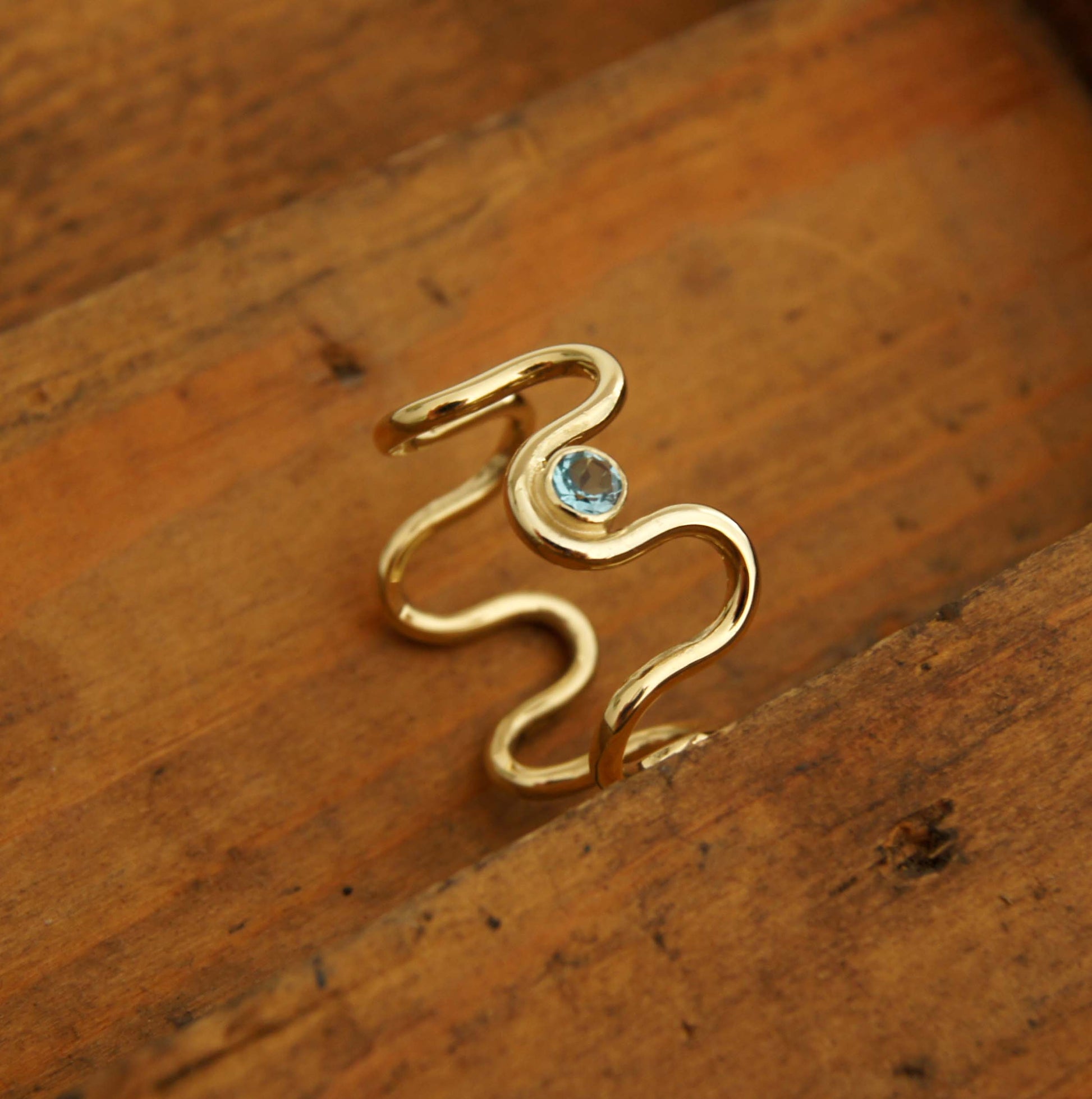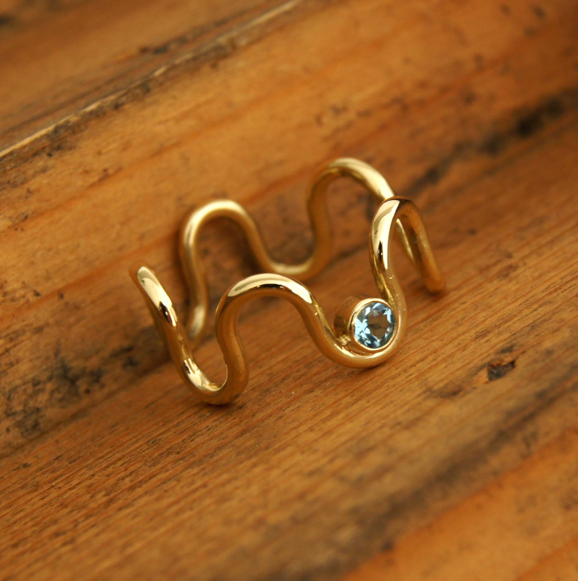 Deze prachtige geelgouden golfring is geïnspireerd op de zee.